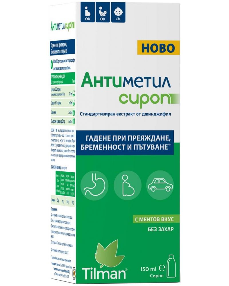 АНТИМЕТИЛ при гадене и повръщане при пътуване, преяждане и бременност сироп х 150мл