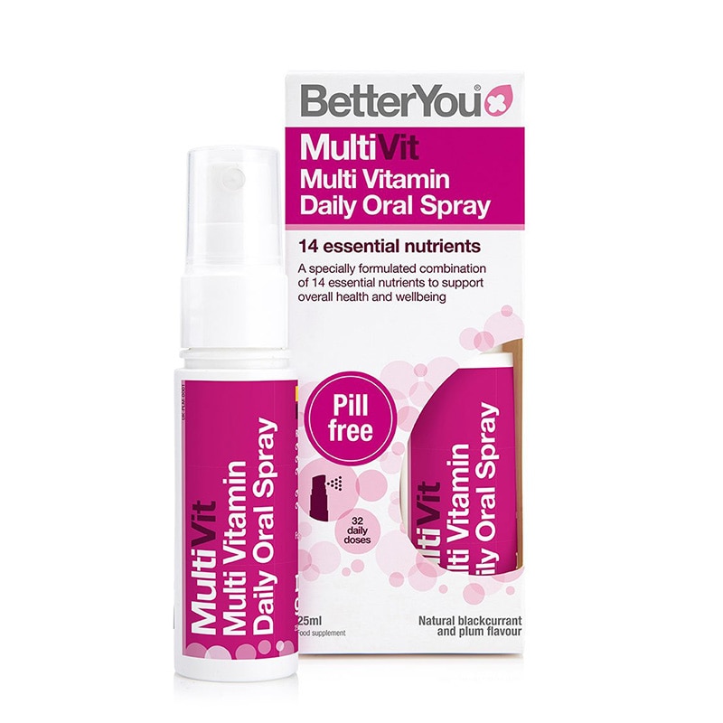 Мултивитаминен спрей, който действа благоприятно на организма и съдейства за намаляването на стреса и умората.