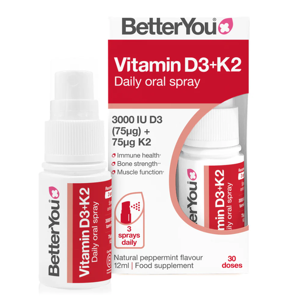 Спрей за перорално приложение на комбинация от Витамин Д и Витамин К2, специално създаден за доставяне на витамините през меките тъкани на устата за оптимално усвояване чрез микрокапчици, които покриват и проникват меките тъкани на вътрешната буза, доставяйки основните хранителни вещества в богатата венозна система. Това дава възможност формулата бързо да влезе в кръвния поток за оптимално усвояване. Оптимална добавка за сила, доставяща комбинация от витамин Д3 с витамин K2 за поддържане на здрава имунна система, здрави кости и съсирване на кръвта.