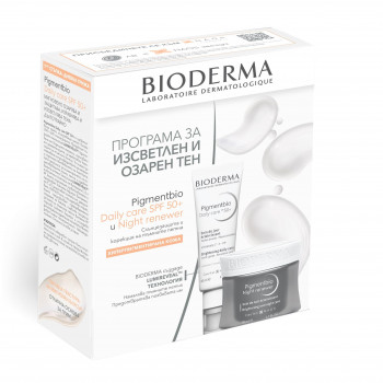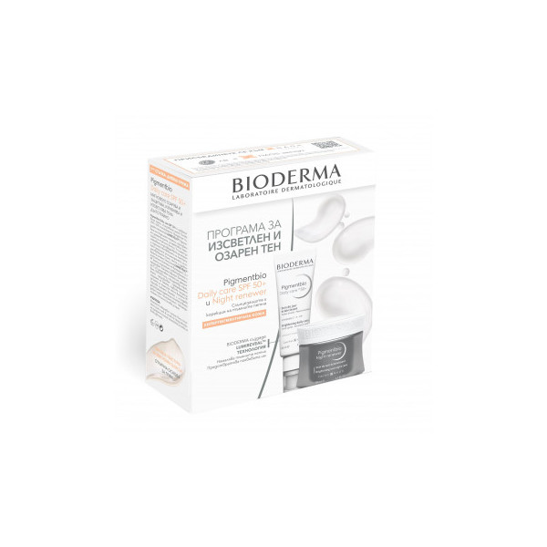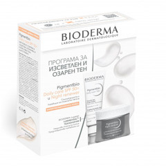 Биодерма предлага специален комплект от дневен и нощен крем от серията Pigmentbio, създаден за пълна грижа при кожа с хиперпигментации. Дневният крем с SPF50+ предпазва кожата от UV лъчи, изравнява тена и придава моментален блясък, докато нощният крем стимулира клетъчното обновяване, редуцира тъмните петна и възстановява естествената еластичност и сияйност. Формулите са обогатени с витамини C и E, които поддържат антиоксидантна защита и оптимална хидратация.