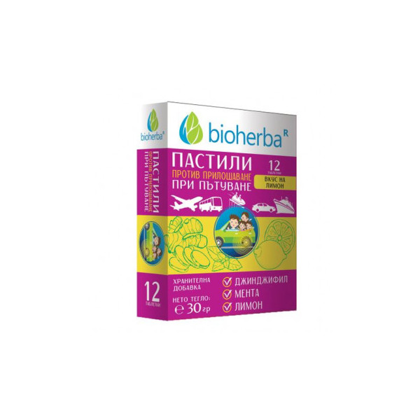 Пастилите против прилошаване от Биохерба са създадени с подбрани билкови екстракти, които помагат за облекчаване на симптомите на кинетоза – гадене, замайване и дискомфорт, често появяващи се при пътуване с кола, автобус, самолет или кораб.