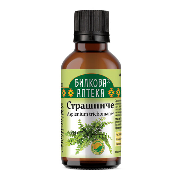 Тинктурата от Страшниче на Биохерба, е натурален глицеринов екстракт, разработен за подкрепа на нервната система и емоционалната устойчивост. Страшничето е известно със своя успокояващ ефект и традиционно се използва при уплаха, тревожност и психическо напрежение. Витамин B12 допринася за нормалната функция на нервната система и участва в производството на невротрансмитери, свързани с настроението и концентрацията. Подходящ продукт при нервна възбудимост, стрес и преумора.