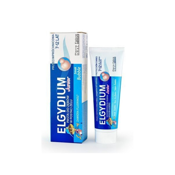 Elgydium Junior Bubble Gum е иновативна паста за зъби, която осигурява специализирана грижа за деца във възрастовия диапазон 7-12 години. Формулата се отличава с наличието на Fluorinol (никотинилов алкохол HF), който спомага за фиксирането на флуорните йони върху емайла, правейки зъбите по-устойчиви на кариес. Това е от особено значение за защитата на първите постоянни зъби, които се появяват в тази възраст. Продуктът е с висока толерантност и съдържа 95% натурални съставки, което го прави безопасен и ефективен избор. Ароматът на дъвка насърчава децата да мият зъбите си редовно и достатъчно дълго.