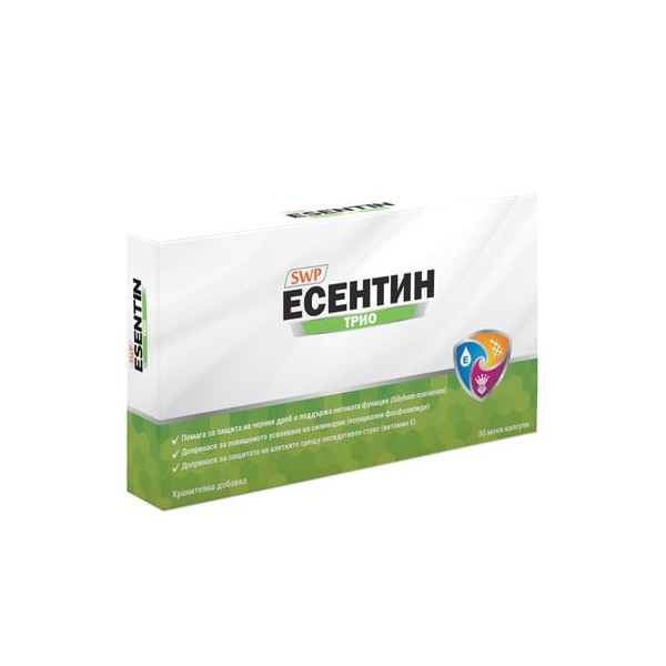 Есентион Трио е хранителна добавка, специално разработена в подкрепа на чернодробната функция. Тя спомага за правилното функциониране и детоксикация на чернодробните клетки и оптималния метаболизъм на мазнини. Съдържа есенциални фосфолипиди, силимарин и витамин Е.