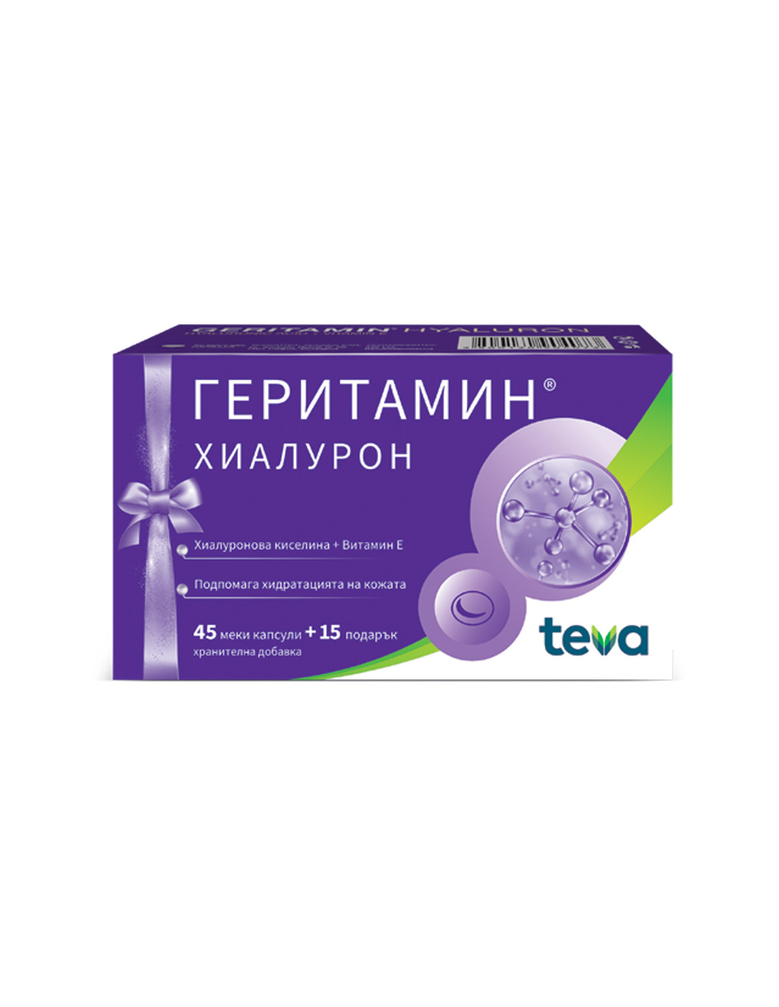 Геритамин Хиалурон е хранителна добавка, създадена за поддържане на оптимална хидратация и еластичност на кожата отвътре. Хиалуроновата киселина с ниско молекулно тегло се усвоява ефективно и подпомага задържането на влага в кожните слоеве. Витамин Е допълва формулата със своето антиоксидантно действие и подкрепя клетъчната защита. Подходящ избор за ежедневна грижа при суха и дехидратирана кожа.