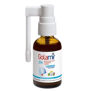 ГОЛАМИР Спрей за гърло без алкохол на АБОКА е натурален продукт, предназначен да облекчава дискомфорта в гърлото, причинен от вируси, бактерии, алергени, сух въздух, прах или дразнещи външни фактори. Формулата съдържа растителния комплекс ActiFilm DOL, който действа чрез образуване на защитен филм върху орофарингеалната лигавица. Това намалява чувствителността, успокоява възпалението и подпомага нормалното състояние на гърлото. Подходящ е при парене, болка, затруднено преглъщане и раздразнение при настинка. Може да се използва самостоятелно или в комбинация с други терапии. Подходящ за деца над 1 година.