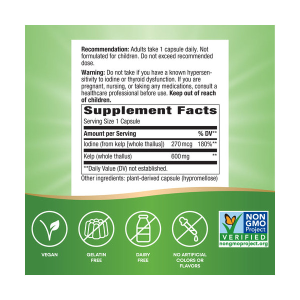 Екстракт от изсушени кафяви водорасли (Келп), която допринася за нормалното функциониране на щитовидната жлеза и ендокринната система. Келпът е натурален източник на 46 минерали, 16 аминокиселини и 11 витамини, най-важните от които са йод, калий, фосфор, желязо и калций и витамините ниацин и витамин А. Келпът се смята за най-добрият източник на йод, поради естествения му произход. Йодът е изключително важен елемент за организма, тъй като той участва в синтеза на щитовидните хормони, което от особена важност за правилното протичане на метаболизма и производството на енергия. Келпът представлява алкална храна, като това го прави изключително полезен за поддържане на алкално-киселинния баланс в организма.