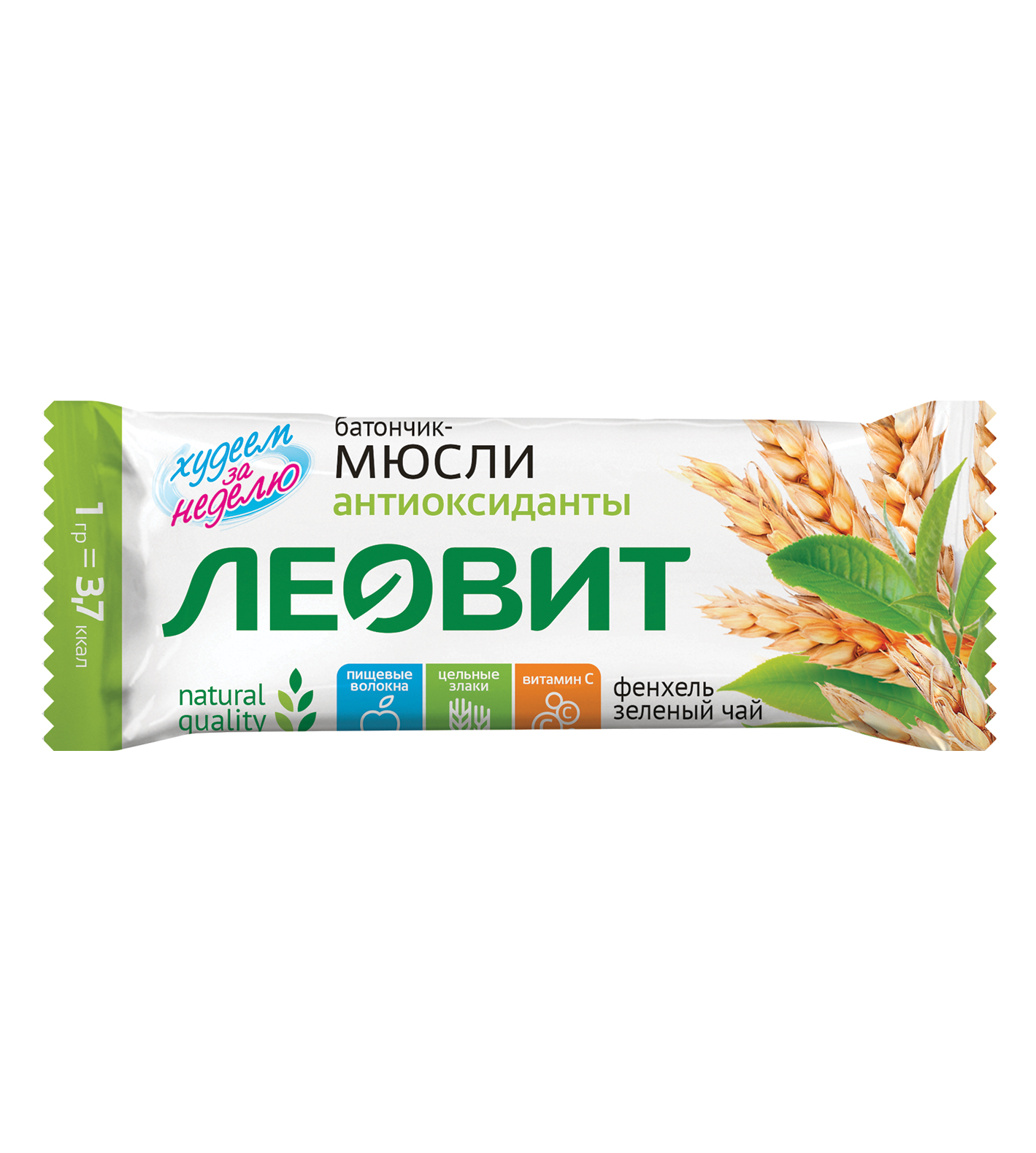 Състав: зърнени култури (овесени и пшенични люспи, бухнал ориз и царевица), меласа, глазура (захар, растително масло, мляко на прах), плодове и плодове (ябълки, ягоди), растително масло, екстракт от зелен чай, копър, витамин С, хлорофил , подсладител – сорбитол, емулгатор – соев лецитин, овкусители, консерванти (калиев сорбат, натриев бензоат)