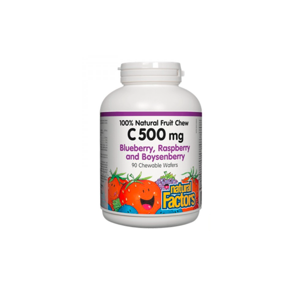 Витамин C с вкус на горски плодове, е хранителна добавка с естествен плодов аромат, съдържаща биофлавоноиди. Витамин С е важен антиоксидант, който помага за защитата на тялото срещу замърсителите на околната среда и дефицита на витамин С в ежедневната диета. Продуктът е естествено ароматизиран и подсладен, 100% натурален, плодов витамин С, подходящ за деца и възрастни под формата на дъвчащи таблетки.