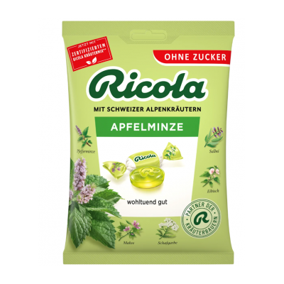 РИКОЛА ЯБЪЛКА И МЕНТА Билкови бонбони без захар 75мг