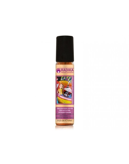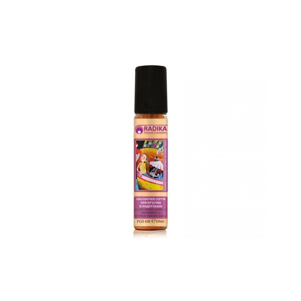 Радика околоочен серум рол-он е натурален продукт за ежедневна грижа за кожата около очите, разработен с фокус върху чувствителната и фина зона. Бадемовото масло подпомага възстановяването на хидролипидната бариера и спомага за изсветляване на тъмните кръгове. Био кокосовото масло подхранва в дълбочина и защитава кожата от външни агресори. Етеричното масло от лайка успокоява, тонизира и подпомага еластичността, а витамин Е действа като мощен антиоксидант. Формулата е лека, попива добре и не утежнява кожата.