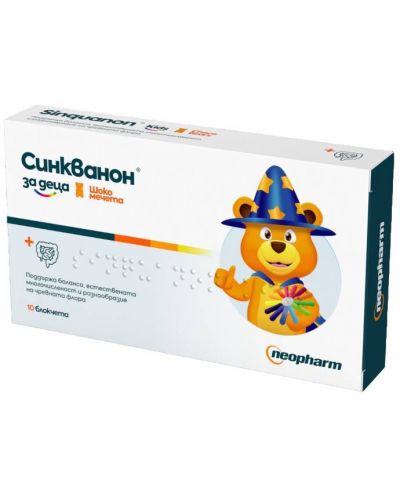 Синкванон е пробиотик, специално предназначен за деца. Съдържа 15 специално селектирани пробиотични щама, оказващи блягоприятно въздействие върху стомашно-чревната флора. Особено подходящи за прием след антибиотично лечение. Иновативна формула, която произвежда ензими, които разграждат токсините в червата.