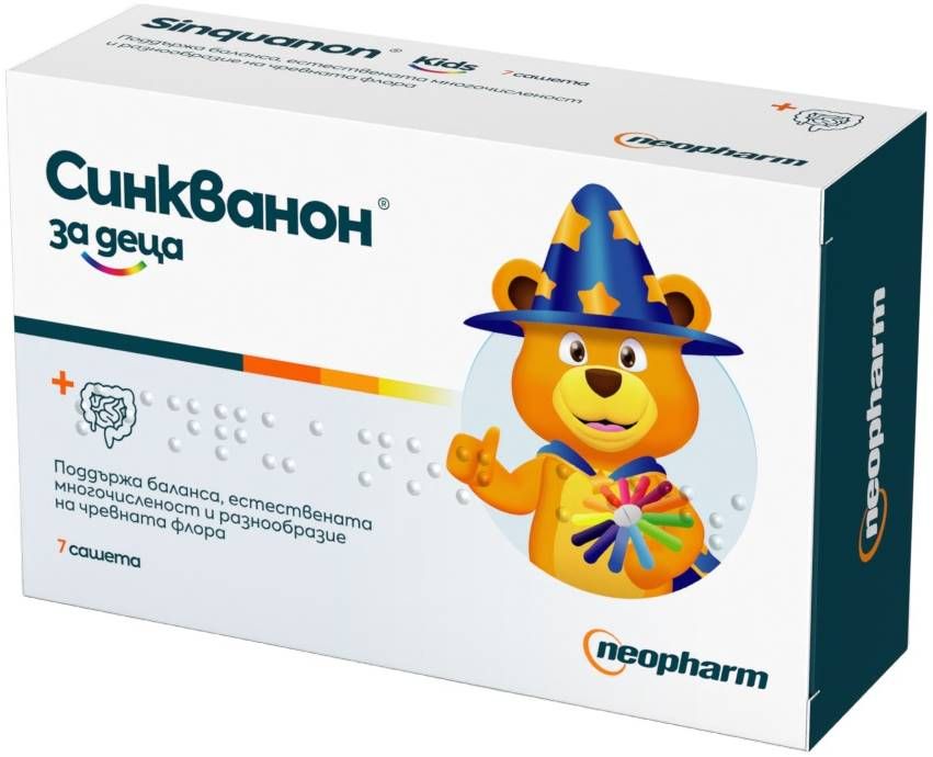 Синкванон е специалне пробиотик предназначен за деца, който съдържа 13 пробиотични щама от три различни пробиотични рода - лактобацили, бифидобактерии и сахаромици.