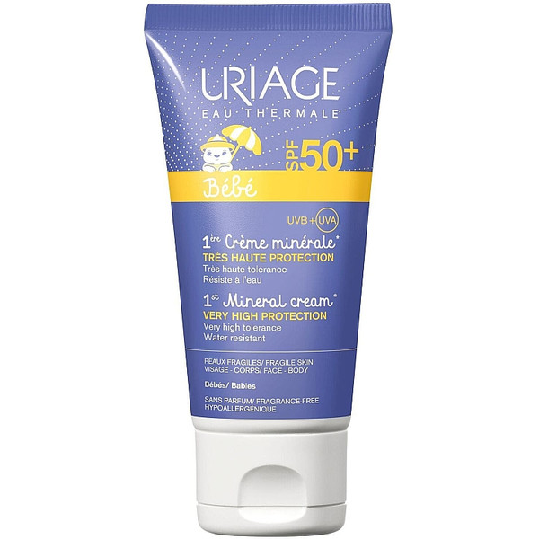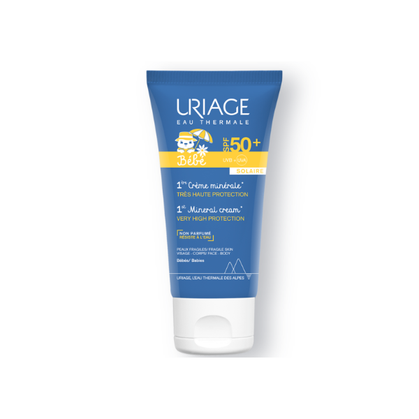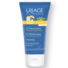 Слънцезащитен крем със 100% минерални филтри, подходящ за ежедневна защита на чувствителната кожа на бебета и деца от вредното въздействие на слънцето. Освен че осигурява висока защита срещу UVB и UVA лъчи, този слънцезащитен крем е обогатен и с Aquaspongines, термална вода Уриаж и витамин Е. Формулиран с глицерин, който поддържа нивата на влага в кожата и я предпазва от външни агресии. Екстрактът от еделвайс в състава на крема притежава антиоксидантни и успокояващи свойства.